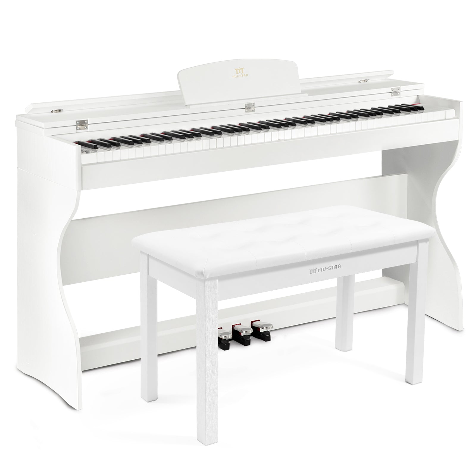 MUSTAR MEP-1321, 88 Key Semi Weighted Digital Piano, FSC Wooden Furniture Stand, White, 3 Pedals, Bench