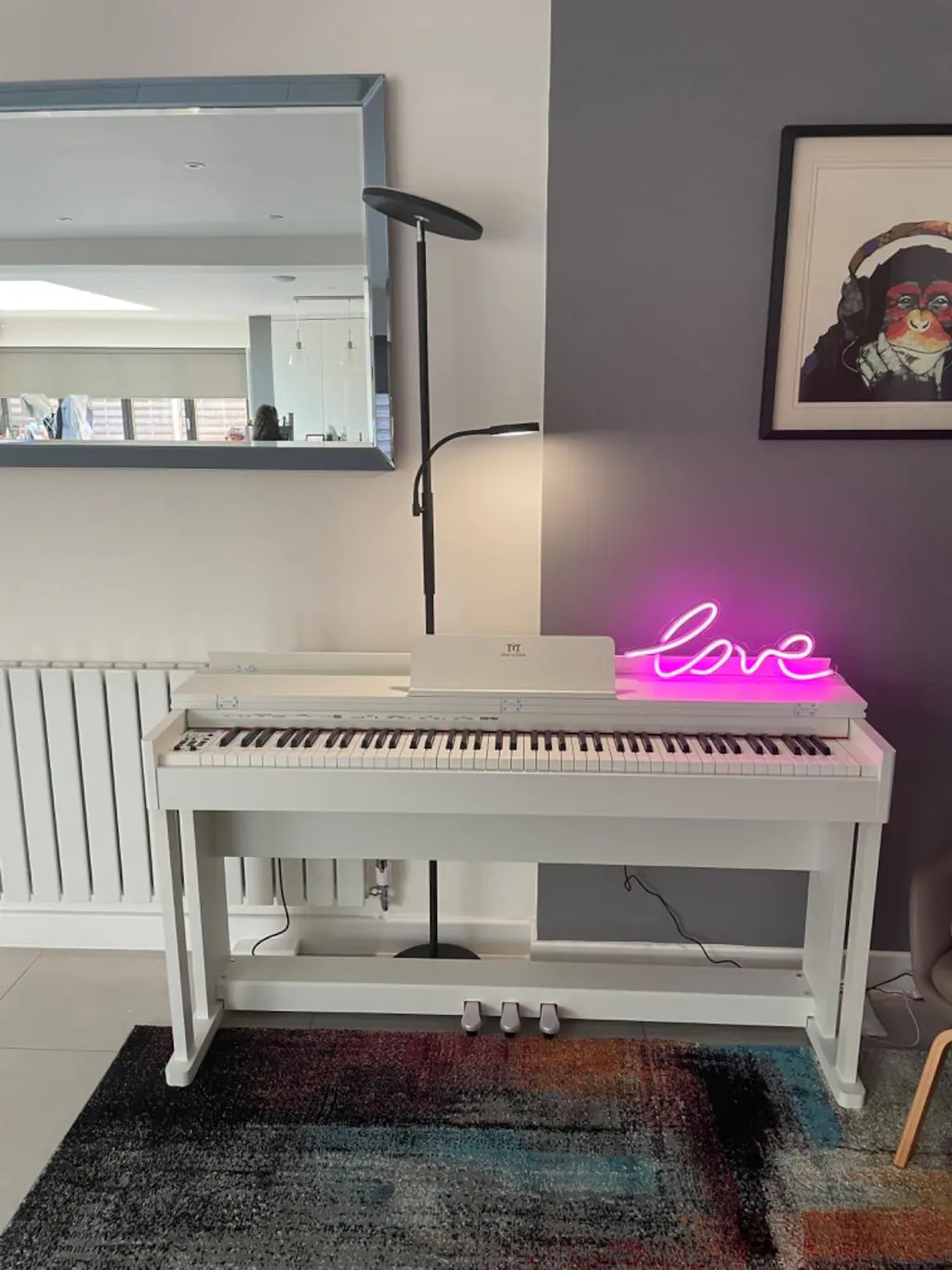 The full size weighted piano keyboard is equipped with 88 premium graded hammer action keys to reproduce the touch of an acoustic piano.