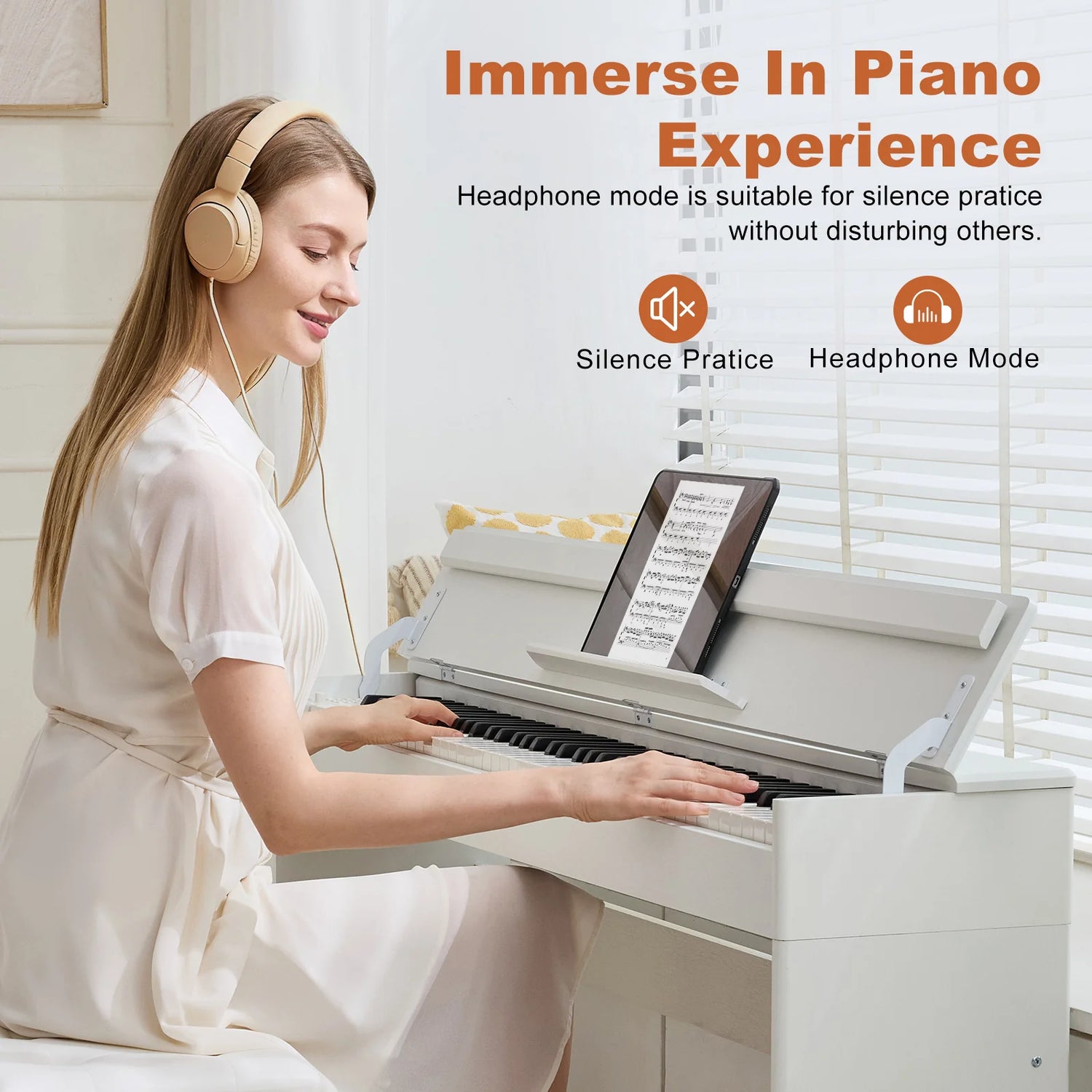 - ♪ PLAY ANYTIME - Used for private practice sessions, simply plug in headphones to instantly mute the speakers, letting you play late at night or in shared spaces without disturbing others. Ideal for apartment living, this allows you to enjoy full-volume piano playing through your headphones while keeping the room completely silent.