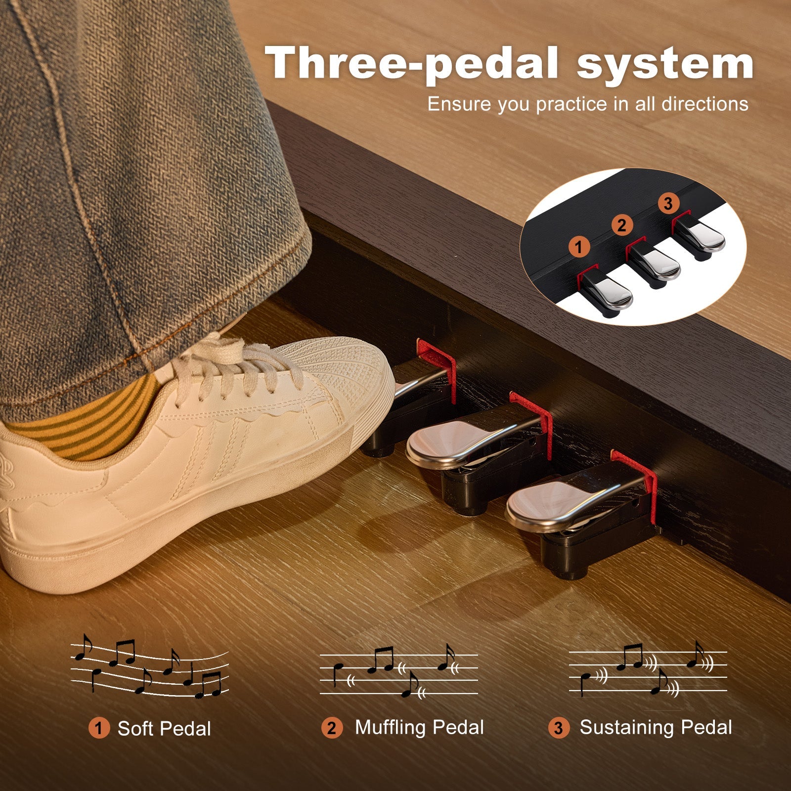 3.5mm Dual Headphone Jacks, it is designed for silent practice day or night, connect headphones to enjoy immersive sound that won’t disturb others.