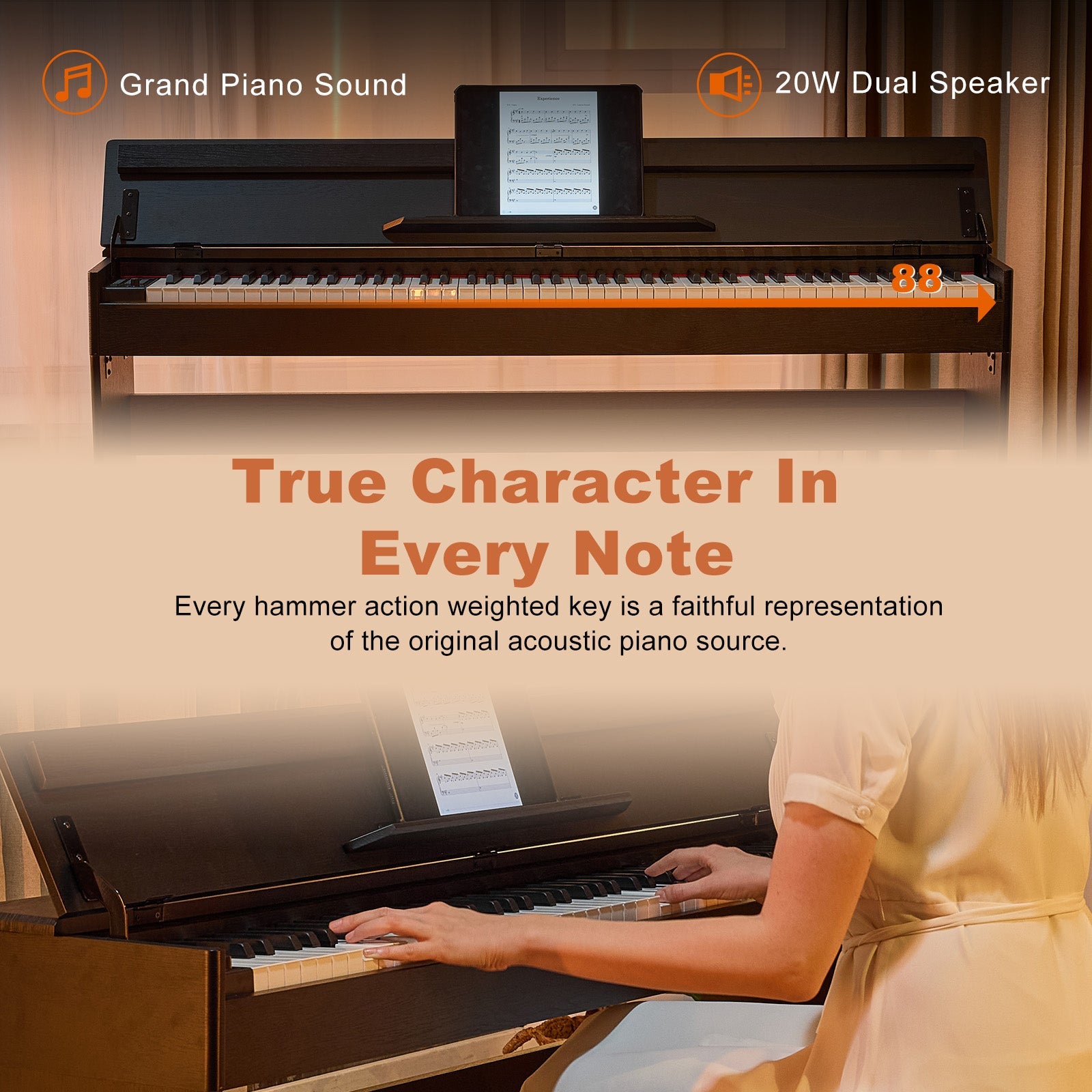 Adopted DREAM source makes the sound quality more realistic and rich, bringing you an auditory piano experience.
