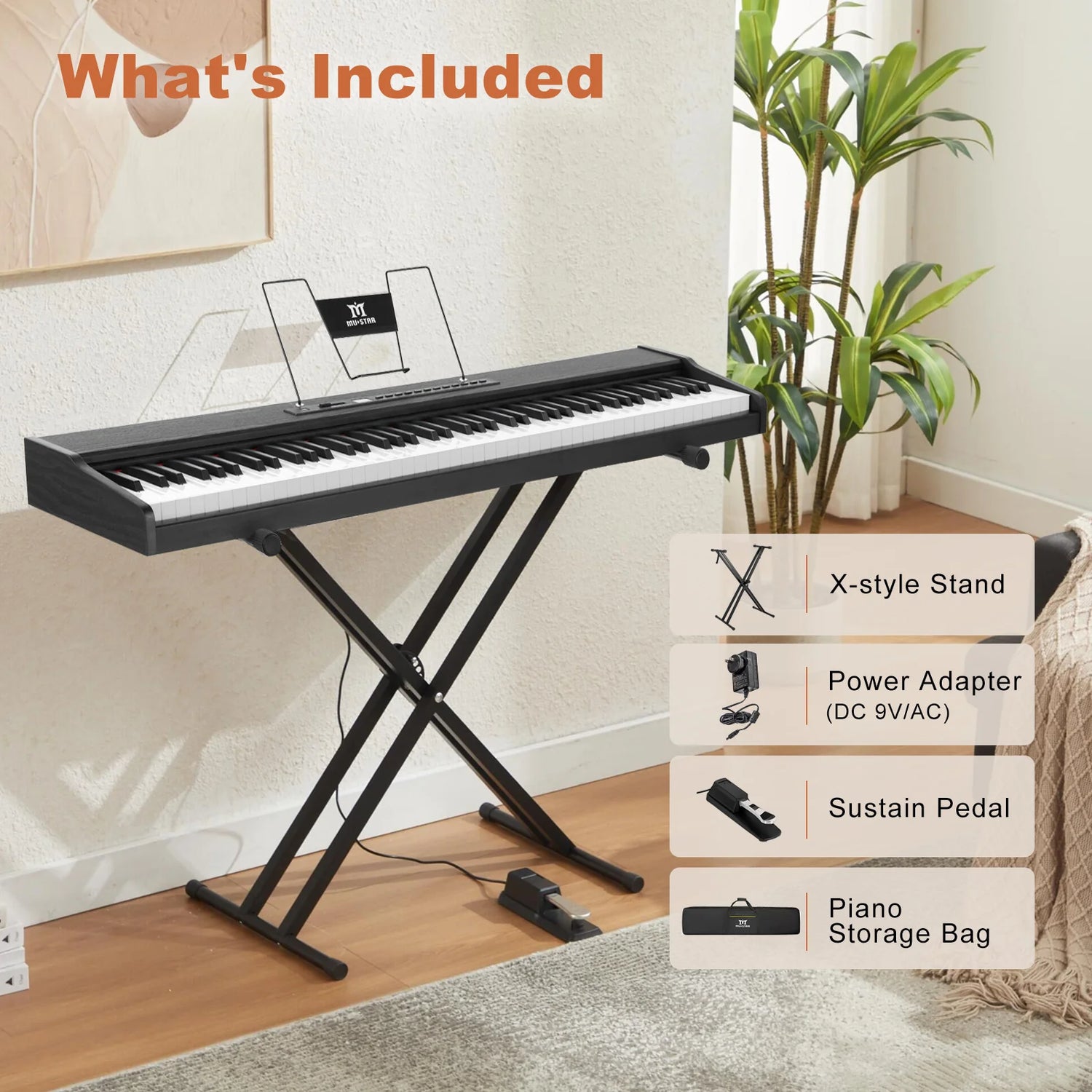 MUSTAR MEP-1400/1500/ 1600, 88 Key Best Beginner Keyboard Piano, FSC Wooden Digital Piano, Portable/ Bluetooth, Stool