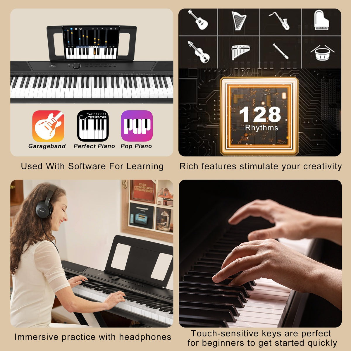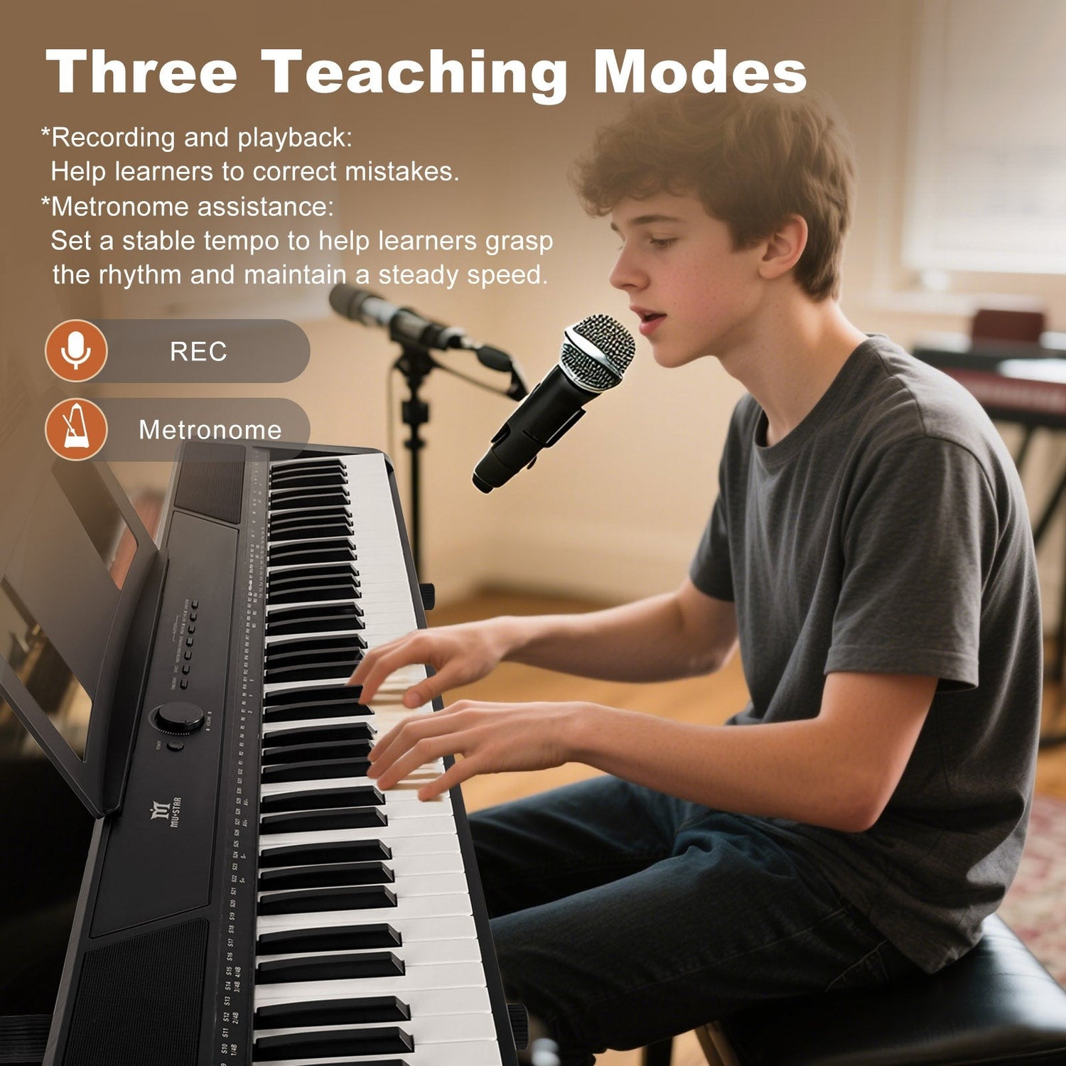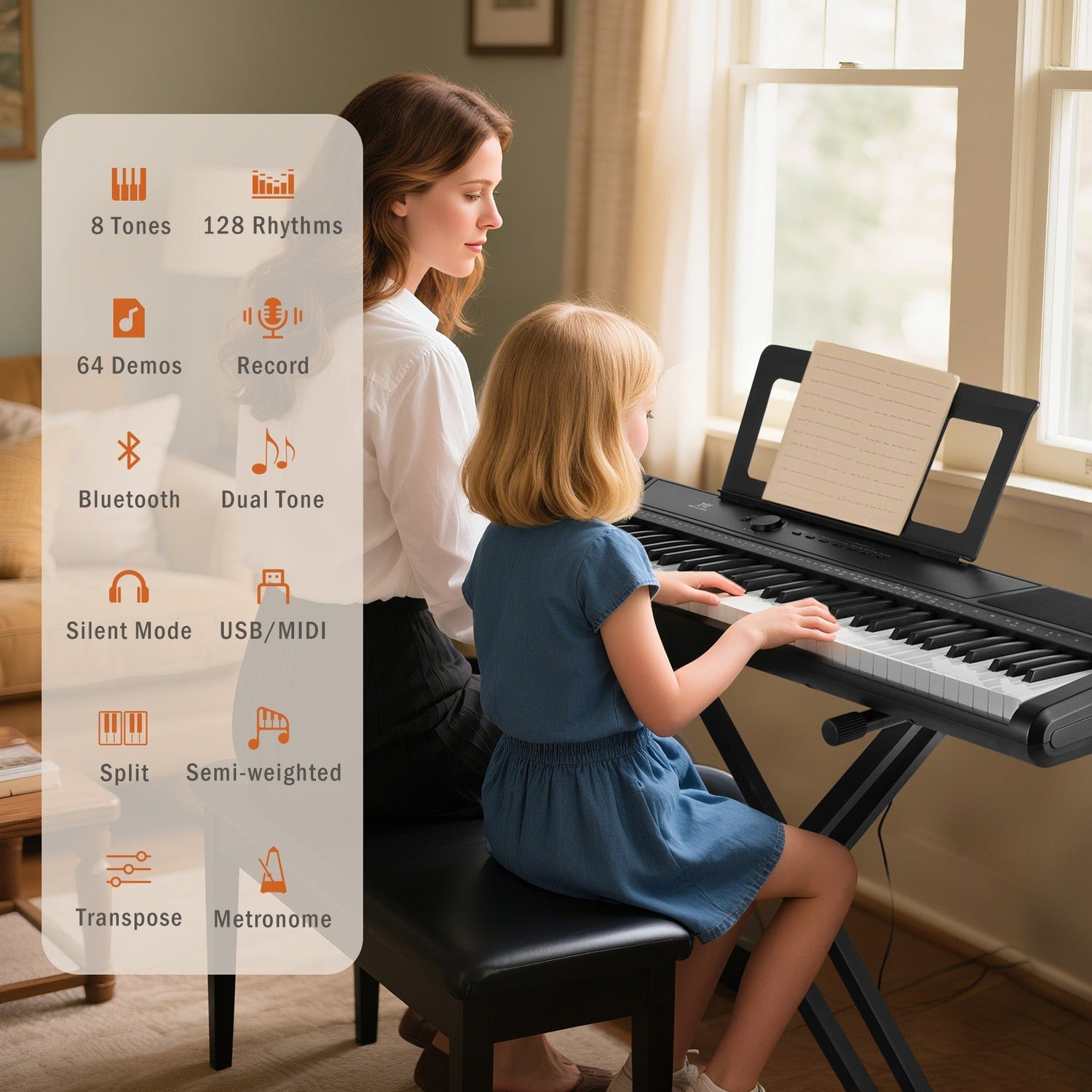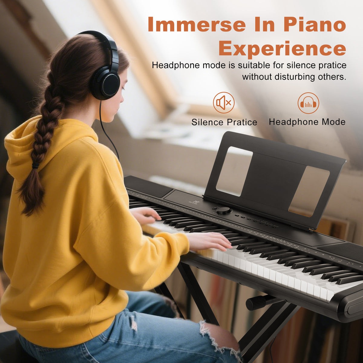 MUSTAR digital piano keyboard features with 88 premium full-sized semi weighted keys which could reflect every nuance of your touching. Play heavily to get louder tones or play soft for quieter sounds, providing a quality playing experience.