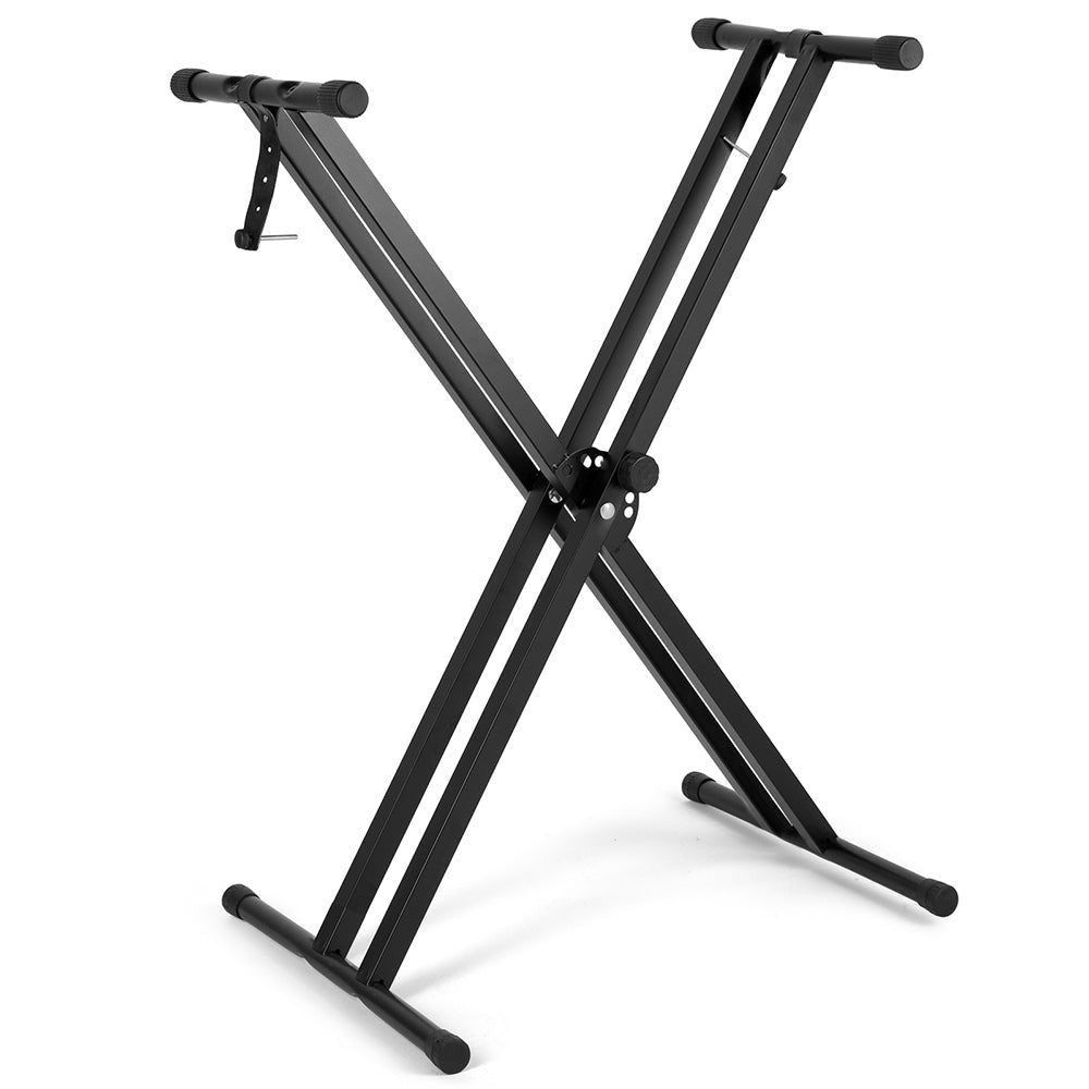 X-Frame double tube piano stand makes it more stable, easy to assembly and use. Quick-release mechanism allows the player to adjust the stand height, from 17 - 42 in.