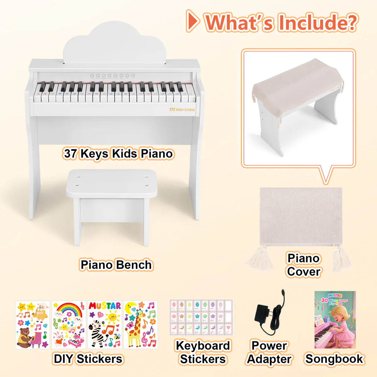 MUSTAR MT-100, 37 Keys Kids Piano Keyboard, Wooden Music Toy Instrument, Early Educational Musical Learning,Stool